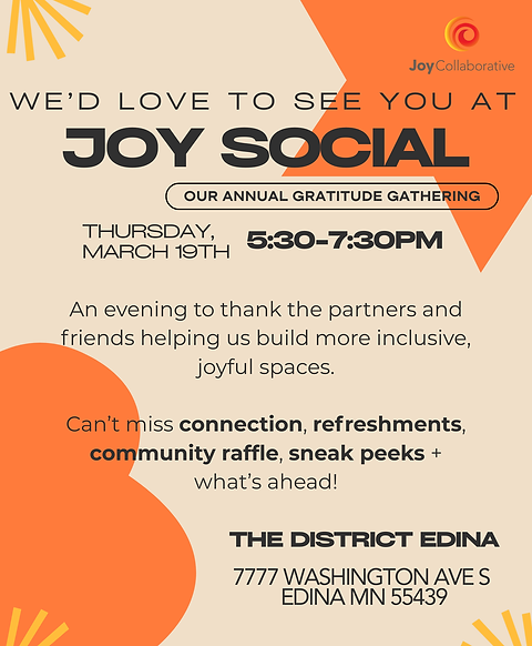 Joy Social is an evening to connect, and celebrate the people who make this work possible. Together, we’ll reflect on the moments from 2025 that shaped our journey, share a glimpse of the meaningful projects ahead, and offer a heartfelt thank you to the community that carries this work forward.